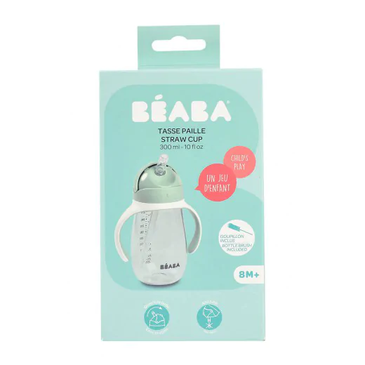 Na butelce znajduje się skala pojemności, dzięki której można podać maluchowi odpowiednią ilość płynu lub sprawdzić, ile dziecko wypiło. Butelka przeznaczona jest dla dzieci od 8. miesiąca życia i pomaga w nauce samodzielnego picia. Wymienną słomkę można wyjmować do mycia. W zestawie znajduje się czyścik do słomki.