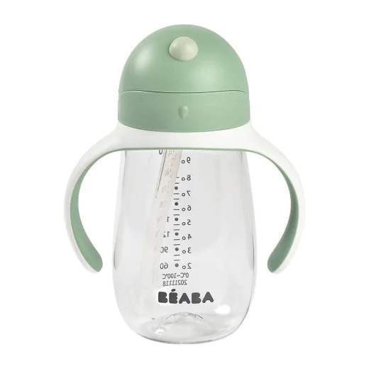 Pojemna, poręczna i lekka butelka ze słomką francuskiej marki BEABA wykonana została z tritanu – nowoczesnego tworzywa BPA free. Ma ergonomiczny kształt, wygodny dla dziecięcych rączek oraz dodatkowy zdejmowany uchwyt z dwoma uchami, które ułatwiają malcowi samodzielne trzymanie butelki. Wymienna silikonowa słomka posiada zawór, dzięki któremu butelka pełni funkcję kubka niekapka. Słomka jest profilowana i umocowana w zakrętce, co zapewnia jej stabilną pozycję i odpowiedni przepływ powietrza podczas picia. Zamknięcie – zintegrowana klapka na klik – jest szczelne, bezpieczne i higieniczne, a przy tym łatwe do samodzielnego otwierania i zamykania przez dziecko.