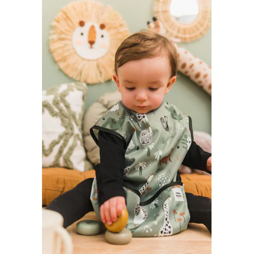 Sprawdzi się doskonale podczas malowania, zabaw plasteliną, prób samodzielnego przygotowania posiłku oraz oczywiście podczas nauki samodzielnego jedzenia. Jest wygodny, nie krępuje ruchów, dobrze przylega do ubranka.
