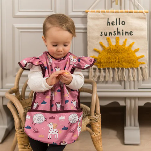 Sprawdzi się doskonale podczas malowania, zabaw plasteliną, prób samodzielnego przygotowania posiłku oraz oczywiście podczas nauki samodzielnego jedzenia. Jest wygodny, nie krępuje ruchów, dobrze przylega do ubranka.
