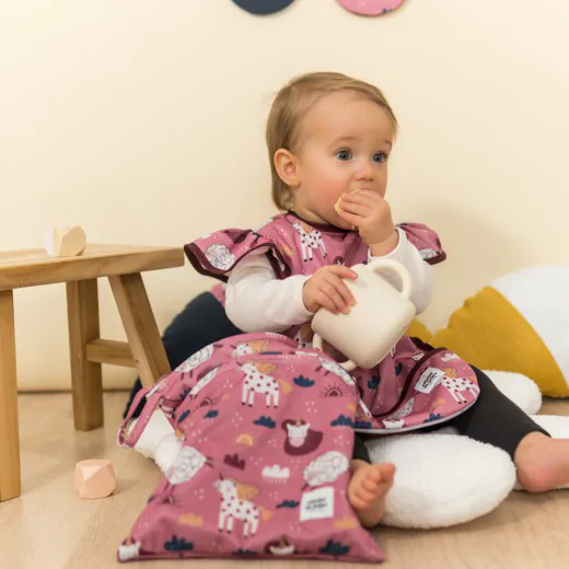 Masz dość dopierania ubranek po posiłku? Planujesz rozszerzać dietę swojego dziecka metodą BLW? Czy po posiłku ubranka dziecka są przemoczone? Mamy dla Was extra pomoc! Wielozadaniowy wodoodporny fartuszek, który zakrywa kolana dziecka oraz chroni ubrania przed zabrudzeniami oraz wodą. Zapinany na napy, które można zapiąć w dwóch konfiguracjach, gwarantując pełną wygodę w czasie posiłku.