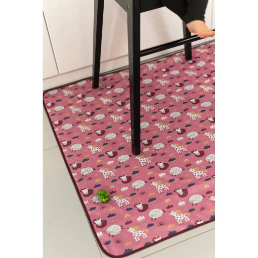Mata ochronna pod krzesło do karmienia dla dzieci, ułatwi zapanowanie nad bałaganem podczas posiłku oraz w czasie zabaw kreatywnych. Niezastąpiona podczas nauki samodzielnego jedzenia oraz zajęć plastycznych. Mata ułatwi sprzątanie po posiłku czy zajęciach artystycznych, wystarczy wytrzepać matę z resztek oraz przetrzeć. Ogranicza ilość marnowanego jedzenia podczas metody BLW (Bobas Lubi Wybór).
