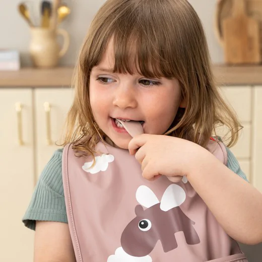Zestaw sztućców z kolekcji Foodie ma miękkie, zaokrąglone krawędzie, dzięki czemu sztućce są bezpieczne dla małych dzieci ćwiczących samodzielne jedzenie. Sztućce doskonale mieszczą się w małych rączkach i zostały dokładnie przetestowane przez dzieci.