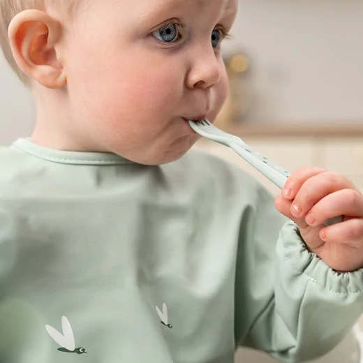 Zestaw sztućców z kolekcji Foodie ma miękkie, zaokrąglone krawędzie, dzięki czemu sztućce są bezpieczne dla małych dzieci ćwiczących samodzielne jedzenie. Sztućce doskonale mieszczą się w małych rączkach i zostały dokładnie przetestowane przez dzieci.