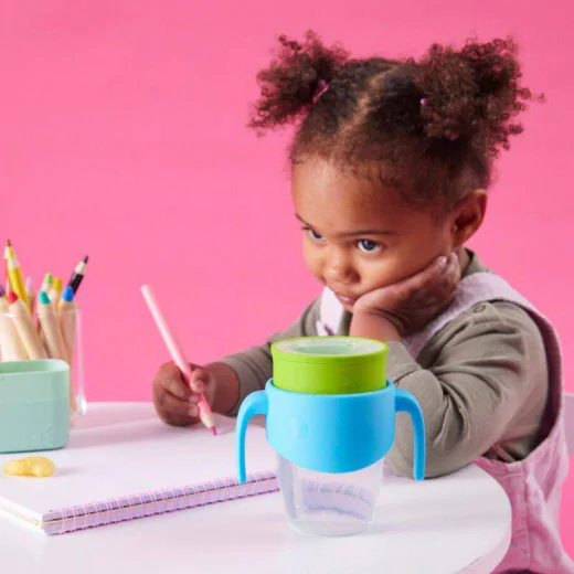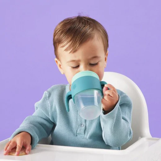 Zalecamy od co najmniej 6 miesiąca życia do momentu, gdy będziesz mieć pewność, że Twoje dziecko poradzi sobie z piciem z otwartego kubka w domu lub w podróży. Niektóre maluchy mogą od razu przyzwyczaić się do kubka 360, a inne mogą potrzebować kilku prób, aby przyzwyczaić się do silikonowej obręczy i przepływu, więc wykaż się cierpliwością. Uchwyty są szerokie, aby dzieci mogły je łatwo chwycić, ale także po to, aby rodzice mogli pomóc im w pierwszych dniach nauki.