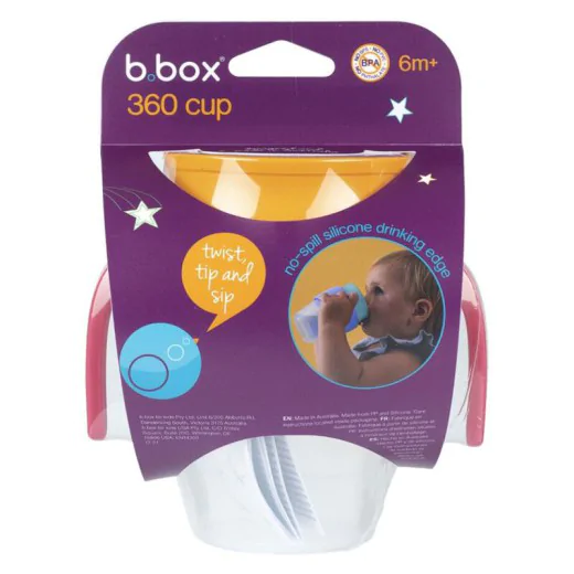 Podstawa kubka 360 nie jest kompatybilna z innymi butelkami lub kubkami b.box (więc nie można go używać z dzióbkiem, kubkiem niekapkiem ani pokrywką treningową!)