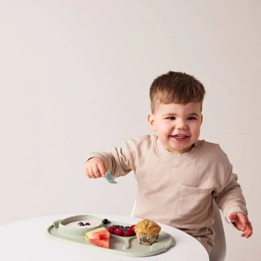 - Trzyczęściowa przegródka (talerzyk) pozwala oddzielić pokarmy i umożliwia maluchowi jedzenie metodą BLW.