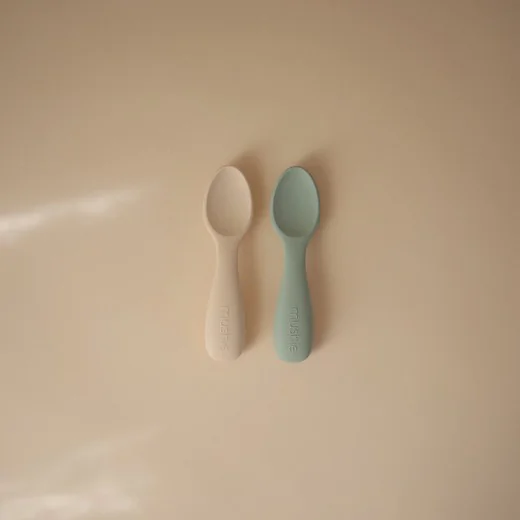 Rozpocznij wprowadzanie nauki samodzielnego jedzenia Twojego malucha, z pomocą łyżeczek startowych dla małych dzieci Mushie!