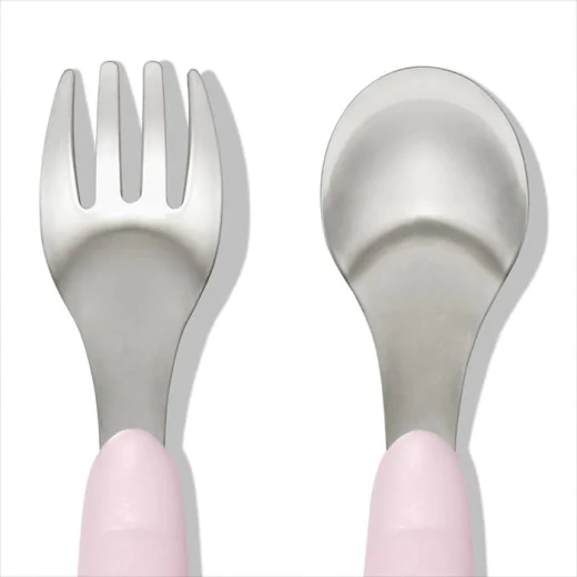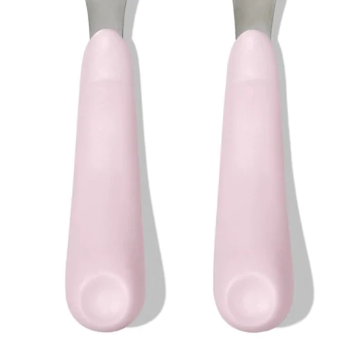 Zestaw sztućców z kolekcji OXO TOT składający się z łyżki oraz widelca dostępny w nowym pastelowym kolorze. To rozwiązanie w sam raz dla malucha, który rozpoczyna naukę samodzielnego jedzenia. Specjalnie wyprofilowane kształty łyżki oraz widelca ułatwiają dziecku nabieranie odpowiednich porcji jedzenia. Silikonowe uchwyty sprawiają, że sztućce nie wyślizgną się z rączki malucha. Ich kształt dopasowany został do małych dziecięcych dłoni i ich umiejętności chwytnych. Wklęsły punkt pod spodem silikonowych uchwytów zapobiega zsuwania się sztućców ze stołu.
