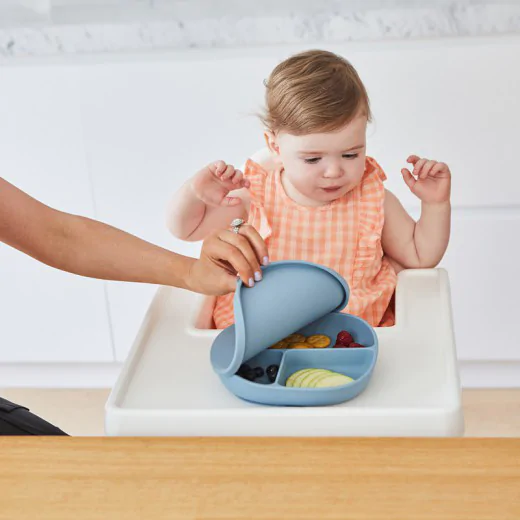 Samodzielne jedzenie staje się prostsze dzięki silikonowemu talerzowi z przyssawką i pokrywką od b.box, który jest doskonałym uzupełnieniem każdej kuchni dla najmłodszych. Stworzony z myślą o wygodzie i funkcjonalności, łączy w sobie trwałość platynowego silikonu z nowoczesnym designem. Silikonowa przyssawka zapewnia stabilność na każdej powierzchni.