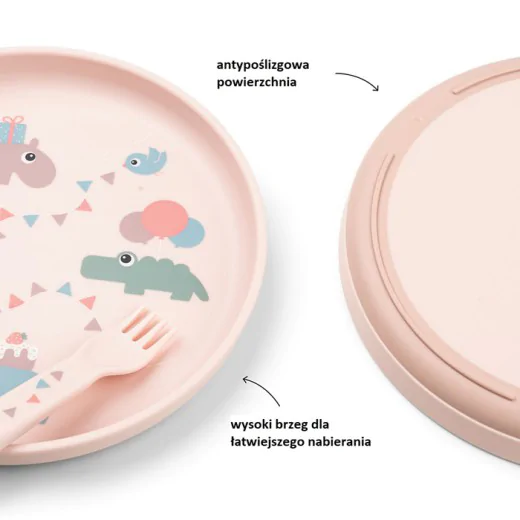 Talerz posiada praktyczną antypoślizgową podstawę, co z pewnością docenią rodzice ;). Ten przecudny zestaw idealnie nadaje się na prezent nie tylko urodzinowy!