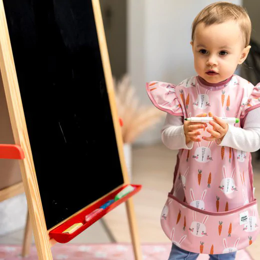 Sprawdzi się doskonale podczas malowania, zabaw plasteliną, prób samodzielnego przygotowania posiłku oraz oczywiście podczas nauki samodzielnego jedzenia. Jest wygodny, nie krępuje ruchów, dobrze przylega do ubranka.