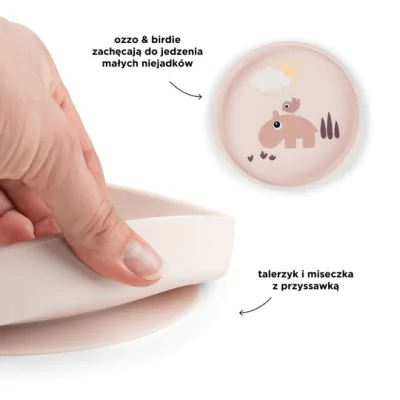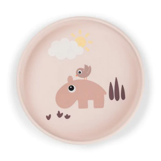 Silikonowy talerzyk dla dziecka z przyssawką ozdobiony uroczym motywem zwierzątka z wybranej kolekcji Done by Deer.