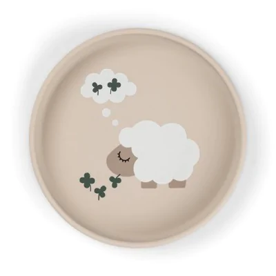 Silikonowy talerzyk dla dziecka z przyssawką ozdobiony uroczym motywem zwierzątka z wybranej kolekcji Done by Deer.