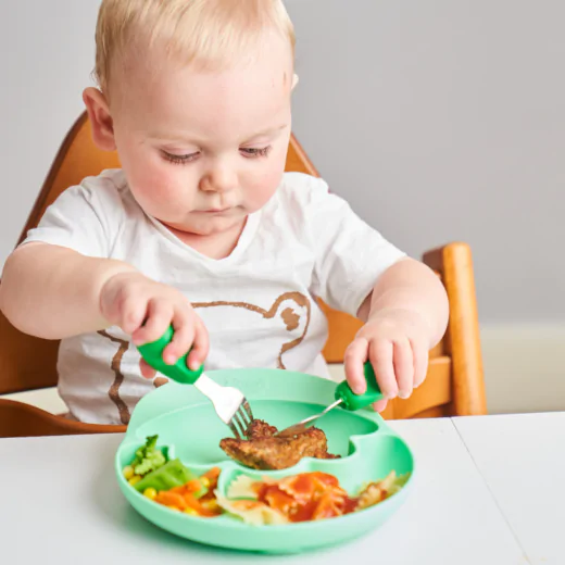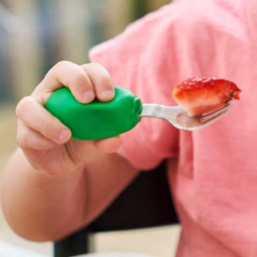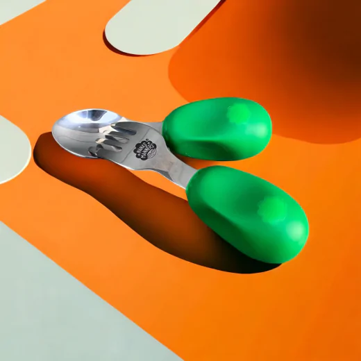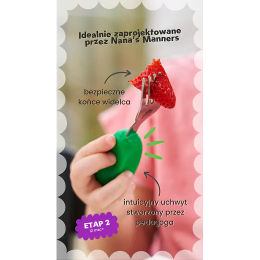 Przeznaczone dla dzieci, które rozwijają umiejętność posługiwania się prawą i lewą dłonią w koordynacji ręka-oko. Sztućce ćwiczące uścisk dłoniowy (Palmar Grip) oraz chwyt cęgowy, używając palców wskazujących i kciuka. Wspierają budowanie pewności siebie podczas samodzielnego spożywania posiłków. Zestaw polecany dla dzieci między 10-12 miesiącem życia do około 3 lat. Tak długo jak dziecko posługuje się chwytem dłoniowym. Absolutnie intuicyjne.